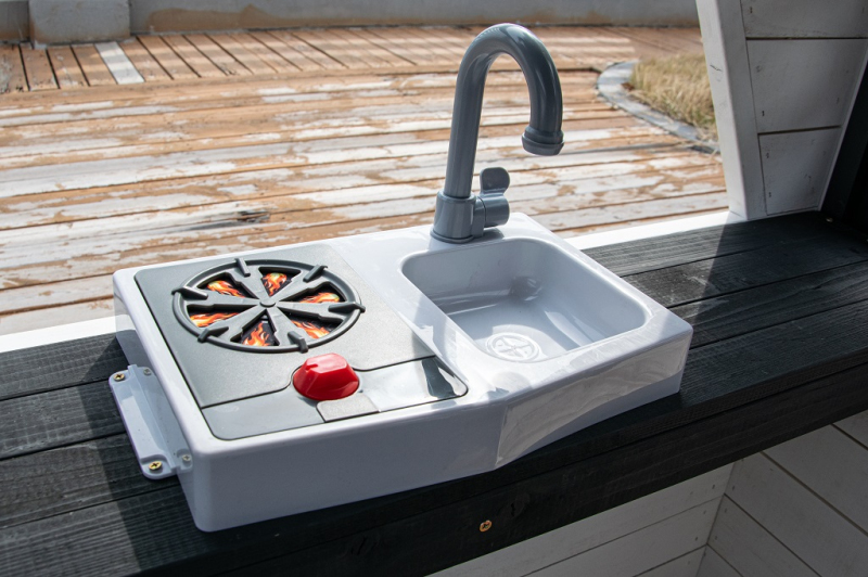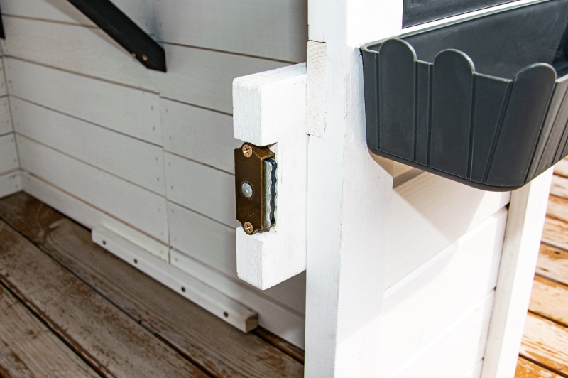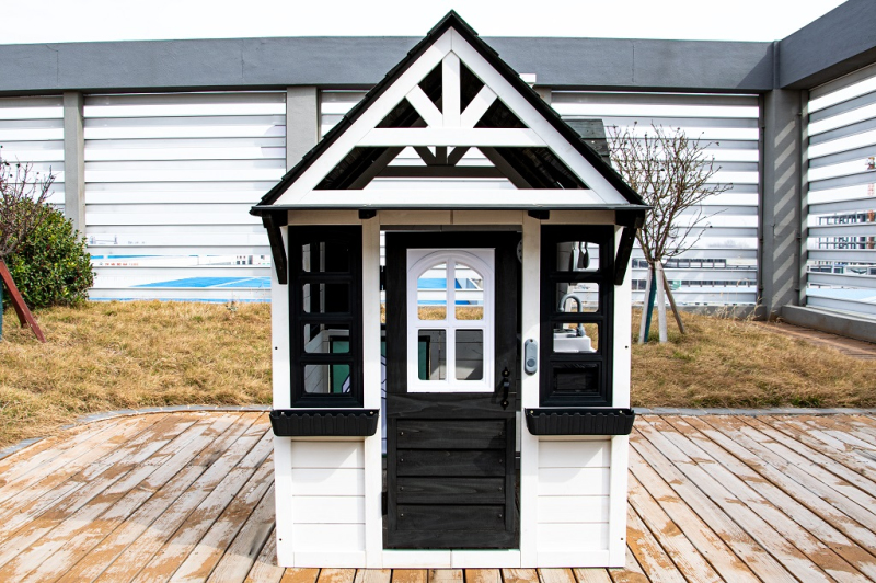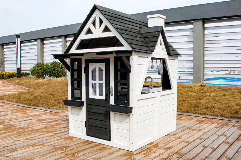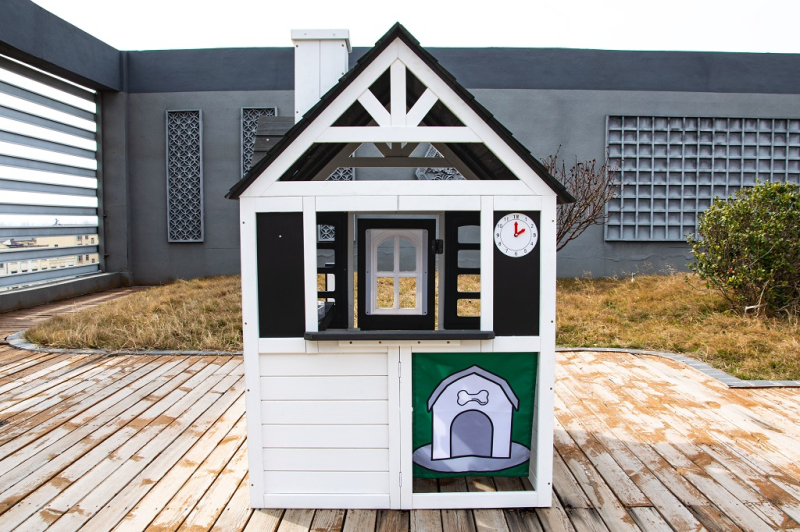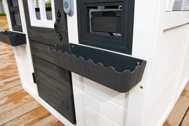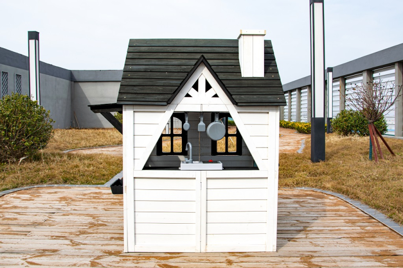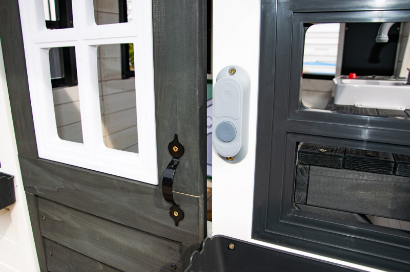 Kdo by netoužil po svém vlastním bydlení! Dopřejte svým dětem klidný kout, kde můžou odpočívat, mít soukromí a nerušeně si hrát. V tomto rozkošném domečku se budou cítit jako v pohádce. Velké boční okno nabízí krásný výhled do okolí a umožní proměnit domeček v prodejní stánek nebo obchod. V útulné kuchyňce, ve které nechybí varná deska s otočným červeným knoflíkem, dřez a základní nádobí, předvedou malí kuchaři a kuchařky své kulinářské dovednosti a připraví pro kamarády nebo rodiče chutné menu. Dalšími stylovými doplňky jsou hodiny, truhlíky po stranách vstupních dveří, ve kterých se budou krásně vyjímat květiny, praktický vstup pro pejska, který je překryt látkovým závěsem s motivem psí boudy. Domeček je vyroben ze dřeva a opatřen nátěrem v přírodních barvách. Bude skvělým doplňkem a ozdobou každé zahrady nebo menšího venkovního prostoru. Tak na co ještě čekáte? Zazvoňte na zvonek a pojďte dál! K napájení zvonku slouží 3 baterie LR44, které nejsou součástí balení. Dodáváno v rozloženém stavu s podrobným návodem na sestavení.