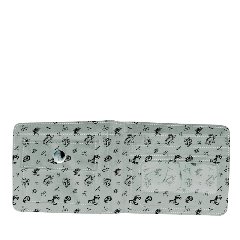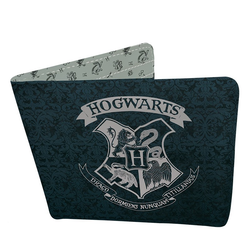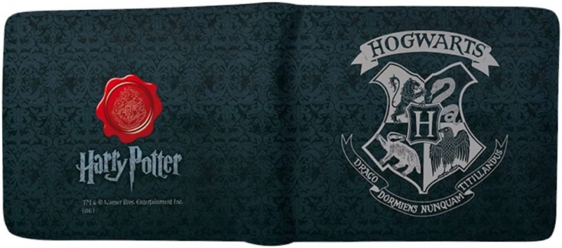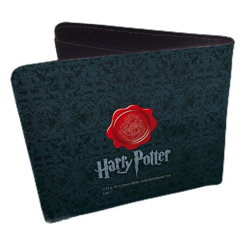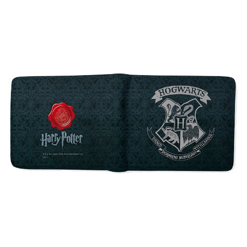 V peněžence ozdobené znakem Bradavic, školy čar a kouzel z Harry Pottera, na přední straně a s červenou pečetí na zadní, budou vaše galeony a srpce, ale i další peníze, platební karty či vstupenky v bezpečí.