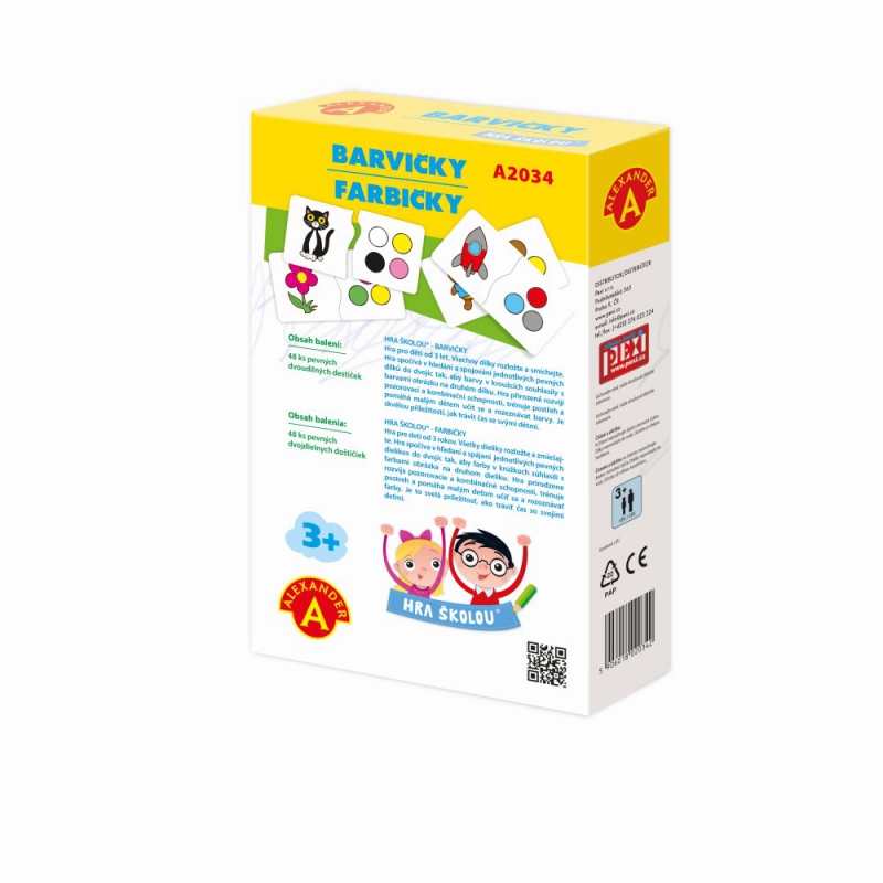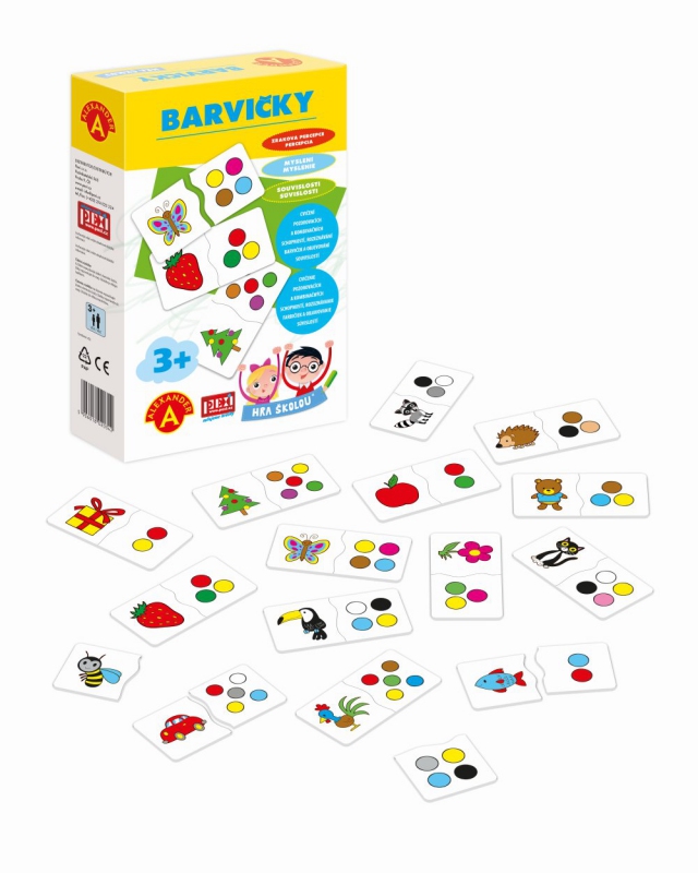 HRA ŠKOLOU® - BARVIČKY je naučná hra pro děti od 3 let, pomocí níž se děti učí zábavnou formou rozvíjet své schopnosti. Učí se rozpoznávat barvy a přiřazovat je ke správnému obrázku, zlepšují si postřeh a soustředění. Znalost barev je jedna ze základních dovedností dětí ještě ve školkovém věku.