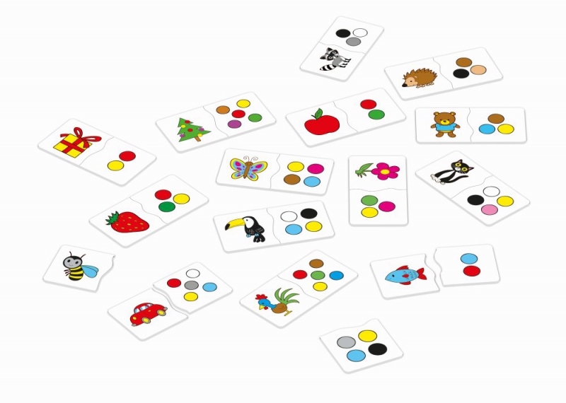 Hra BARVIČKY se skládá z 24 různých destiček. Jedna destička se vždy skládá ze dvou polovin. Jedna polovina obsahuje jeden obrázek a druhá půlka různobarevná kolečka. Barva koleček se shoduje s barvami, které obsahuje obrázek na odpovídající druhé části. Úkolem dětí je najít 2 kartičky kde jsou stejné barvičky jak na obrázku, tak v kolečkách a přiložit je k sobě. Vlnovkové spojení obou polovin destiček dětem napoví, jestli jejich úsilí bylo úspěšné. Zábavnou formou se tak děti učí nejen barvičky, ale hraní podporuje také pozorovací schopnosti a logiku, a v neposlední řadě jemnou motoriku dětských ručiček. - učí poznávat barvy - pomáhá zlepšovat jemnou motoriku - rozvíjí pozorovací schopnosti a postřeh.