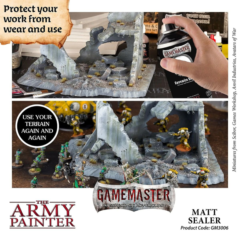 Sprej Army Painter GameMaster Terrain Matt Sealer je vhodný do kombinace se základními nátěry řady GameMaster Terrain Primer pro tvorbu terénů a scenérií. Gamemaster Terrain Sealer je na vodní bázi a bude chránit vaše terény před třepením, příp. zapečetí základní vrstvu. Sealer má matný povrch, je netoxický a bez zápachu. Nebude korodovat materiál - ať již používáte pěnu XPS, polystyren nebo MDF desky. Balení obsahuje 300ml. Odkazy video (anglicky)