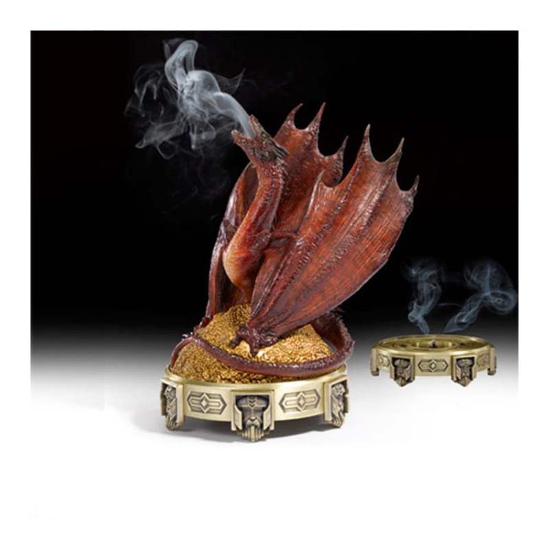 Detailně propracovaná aromalampa na vonné esence připomíná mocného draka Šmaka z filmové trilogie Hobit. Vnitřek nádoby je uzpůsobený pro kadidlo. Po jeho zapálení začne z tlamy draka vystupovat kouř. Jedná se o velice pěknou dekoraci, která udělá radost. Kadidlo není součástí balení.