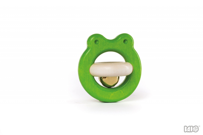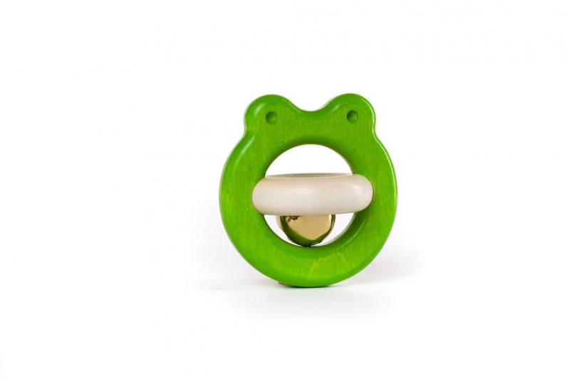 Chrastítko žabka s rolničkou v zelené barvě uzpůsobené pro dětské ručičky. Rolnička jemně cinká. Hračka probouzí zvědavost a dítě si s její pomocí procvičí jemnou motoriku. U velmi malých dětí doporučujeme při hře dohled dospělé osoby.