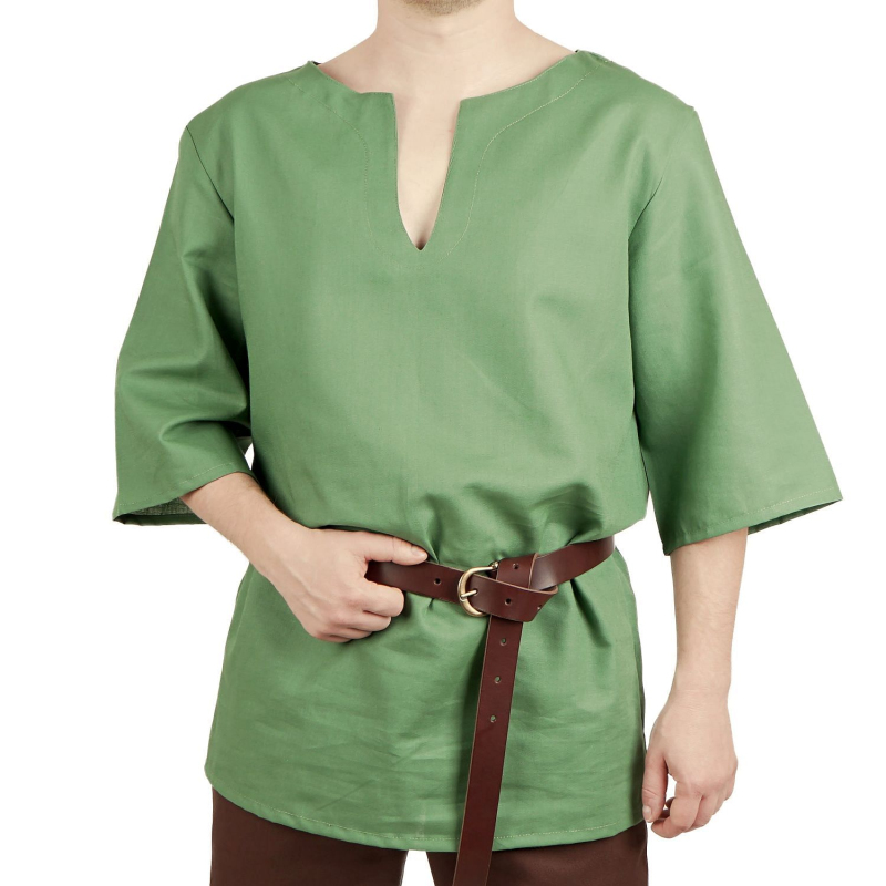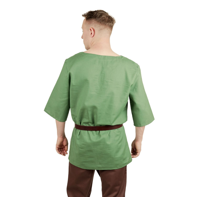 Jednoduchá košile volnějšího střihu s tříčtvrtečním rukávem. Je ušitá z kvalitního bavlněného plátna. Díky lehkosti a materiálu se v ní budete cítit příjemně i během teplých letních měsíců. Zelenou košili Odin snadno využijete jako základ každého historického nebo fantasy kostýmu ať už se chystáte na dřevárnu, LARP nebo historický jarmark. Můžete si ji ale pořídit i v jiných barvách. V naší nabídce najdete i košili hnědou, černou nebo krémovou. Pořiďte si k této slušivé košili některé z našich historických a fantasy kalhot, uděláte skvělý dojem. Chystáte se do boje a říkáte si, že košile není ta nejlepší obrana? Asi máte pravdu, co takhle se pro jistotu vybavit i koženou zbrojí z naší nabídky?
