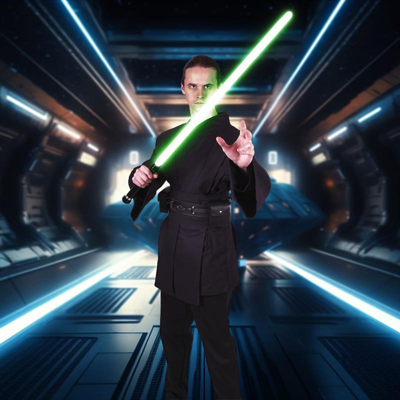 Bavlněná vrchní tunika v černé barvě pro všechny rytíře a mistry Jedi i jejich nadějné Padawany. Přestože bývá černá barva tradiční spíše u Sithů, oblíbil si ji třeba i Luke Skywalker. V našem kostýmu Jedi uděláte perfektní dojem v té nejhorší putyce Mos Eisley i v Galaktickém senátu na Coruscantu. Jediská vrchní tunika je vyrobená ze 100% bavlny. Díky kvalitnímu materiálu je příjemná na nošení, pohodlná a vzdušná. Zapíná se pomocí vázání, a to vždy zleva doprava. Utáhnutím si tak tuniku můžete vždy snadno přizpůsobit tak, aby vám perfektně seděla. Vrchní tunika má široký dlouhý rukáv a jednoduchý, ozdobný lem kolem krku. Kromě černé varianty šijeme tuniku i ve světlé béžové barvě, nebo stylové hnědé barvě. Dokonalý kostým rytířů Jedi, ochránců míru ve světě Star Wars, vytvoříte spojením pěti částí: kromě vrchní tuniky budete potřebovat i tuniku spodní, stylový tabard, bavlněný pásek sash a plášť mistrů Jedi. To vše navíc můžete doplnit koženým opaskem s kapsami a legendární zbraní rytířů Jedi – světelným mečem. Model je vysoký 185 cm a má na sobě tuniku Jedi velikosti M. Tunika odpovídá oficiálním standardům Star Wars kostýmové organizace.