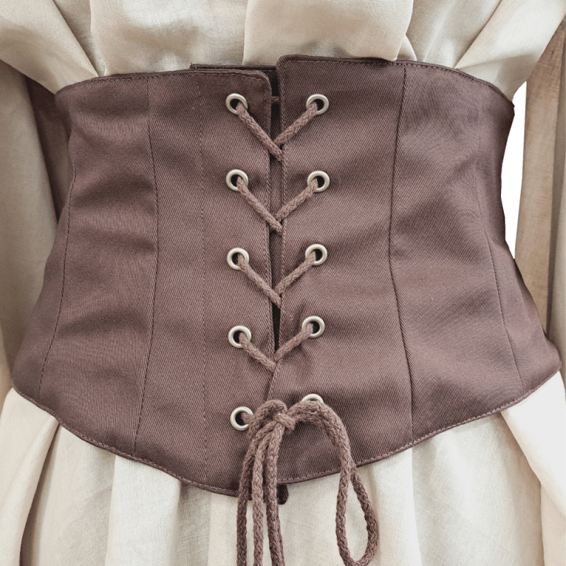 Získej úchvatný a elegantní vzhled s naším nádherným hnědýmkorzetem z prvotřídního kepru (gramáž 245 g). Tento korzet je vypodšívkovaný stejným materiálem a tvar drží čtyři kostice. Náš korzet tedy není jenom módním doplňkem, ale přináší také výjimečné pohodlí. Zvýrazni svou postavu a získej nekonečný obdiv! Naše korzety jsou navrženy s ohledem na praktičnost a pohodlí, což z nich činí nejen skvělý doplněk ke kostýmu, ale také praktický a pohodlný oděv pro každou příležitost. Neváhej tedy přidat do svého šatníku tento unikátní kousek, který pozvedne tvé sebevědomí na úplně novou úroveň. Korzety z naší dílny nejsou prostě dalším produktem na trhu. Jsou výsledkem pečlivé práce a lásky, kterou vkládáme do každého našeho výrobku. Oblečení prochází pečlivou kontrolou kvality, abychom ti mohli garantovat, že dostaneš pouze ten nejlepší produkt. Naše dílna není jen pracovištěm, je to místo, kde se tvé sny o vlastním stylu stávají skutečností. Buď připravena na každou výzvu a zaujmi svým nezaměnitelným stylem díky keprovému korzetu, který láká dotekem historie. Korzet vypadá skvěle například se Středověkými béžovými nebo zelenými šaty Merida. Pokud si chceš přečíst více o použitém materiálu, mrkni zde: popis materiálů ## Možnost jiné barvy ## Na přání ti můžeme ušít produkt z kterékoliv nabízené barevné varianty bez příplatku – stačí uvést jméno barvy ze vzorníku do poznámky tvojí objednávky.