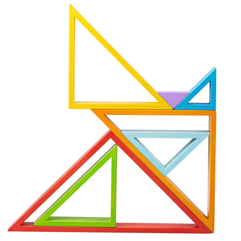 Skládací a všestranná hra s nekonečnými možnostmi a kombinacemi. Nenajdete zde žádný návod ani doporučení, můžete skládat zcela dle představivosti. Děti se při hře také naučí rozeznávat barvy a tvary. Vyrobeno z pevného dřeva, barveno netoxickými barvami. Až si děti dohrají, mohou si barevnými trojúhelníky vyzdobit pokojíček. Podporuje rozvoj kreativity, zručnosti a prostorové představivosti. Vyrobeno z kvalitních materiálů ze zodpovědných zdrojů. Splňuje evropské bezpečnostní standardy.
