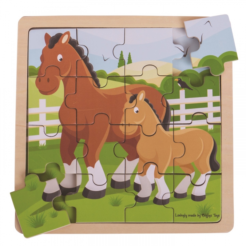 16 dílků robustního puzzle se vkládá na podklad se stejným motivem.