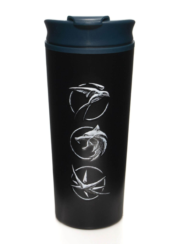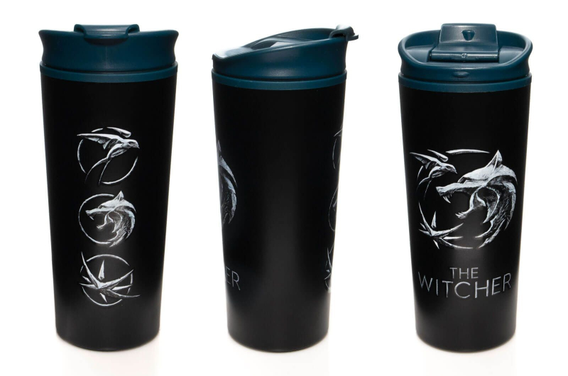 Šikovný hrnek na cesty se symboly trojice hlavních hrdinů fantasy seriálu Zaklínač od Netflixu - těch, které spojil sám osud. Na černém hrnku najdete znak vlka Geralta z Rivie, jitřenku čarodějky Yennefer a vlaštovku princezny Ciry z Cintry. Ať vám nevystydne váš oblíbený lektvar, až budete čekat na příchod netvora! Plastový hrnek s vnějším kovovým pláštěm a uzavíratelným víčkem má objem 450 ml. Hrnek nepatří do myčky nádobí ani mikrovlnné trouby.