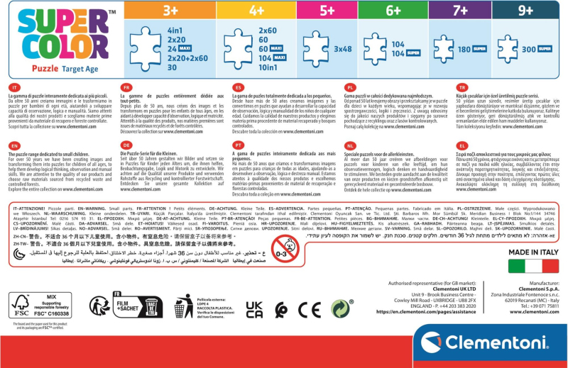 Dětské puzzle SuperColor Collection - edice navržená speciálně pro děti, pomáhá jim rozvíjet manuální zručnost a schopnost pozorování. Kvalita materiálů a exkluzivní technika tisku zaručují trvale krásné, živé a zářivé barvy. Rozměr složeného puzzle cca 38 x 27 cm