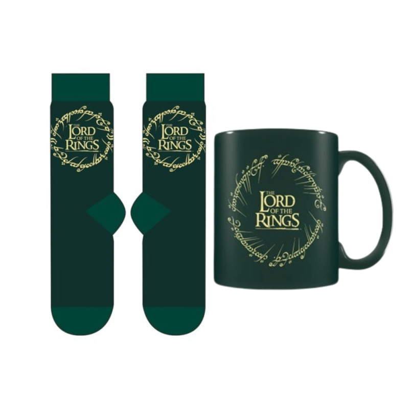 Fanouškovská dárková sada pro všechny milovníky Pána prstenů a J.R.R. Tolkiena. V jednom balení nalezneš zelené ponožky s logem Lord of the Rings a nápisem z vládnoucího Prstenu moci. Společně s ponožkami je součástí balení také ladící hrnek o objemu 300 ml - rovněž s ikonickým logem filmové trilogie. Hrnek je vhodný do mikrovlnky a lze ho mýt v myčce. Ponožky mají univerzální velikost UK 7-11 (EU 41-45).