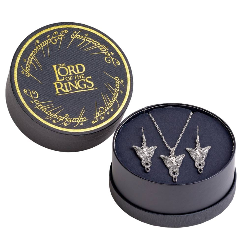 Tento okouzlující set obsahuje elegantní náhrdelník a visací náušnice zdobené třpytivým broušeným krystalem, zasazeným do kovu ve stříbrném tónu. Motiv Večernice symbolizuje lásku, oddanost a odvahu – stejně jako příběh Arwen ze světa Pán prstenů. Šperky působí jemně, ale nepřehlédnutelně, a snadno dodají tvému outfitu nádech fantasy elegance – ať už vyrážíš do školy, do práce nebo na slavnostní příležitost! Šperky jsou uložené v elegantní černé krabičce s logem.