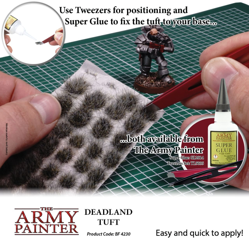 Balení Dekorace Army Painter - Deadland Tuft vám umožní vytvářet realistické podstavce modelů a miniatur v podobě mrtvé krajiny, ideální pro nemrtvé říše a království. Obsaženy jsou 3 různé velikosti pro každý typ podstavce. Snadné použití za pomoci lepidla Super Glue.