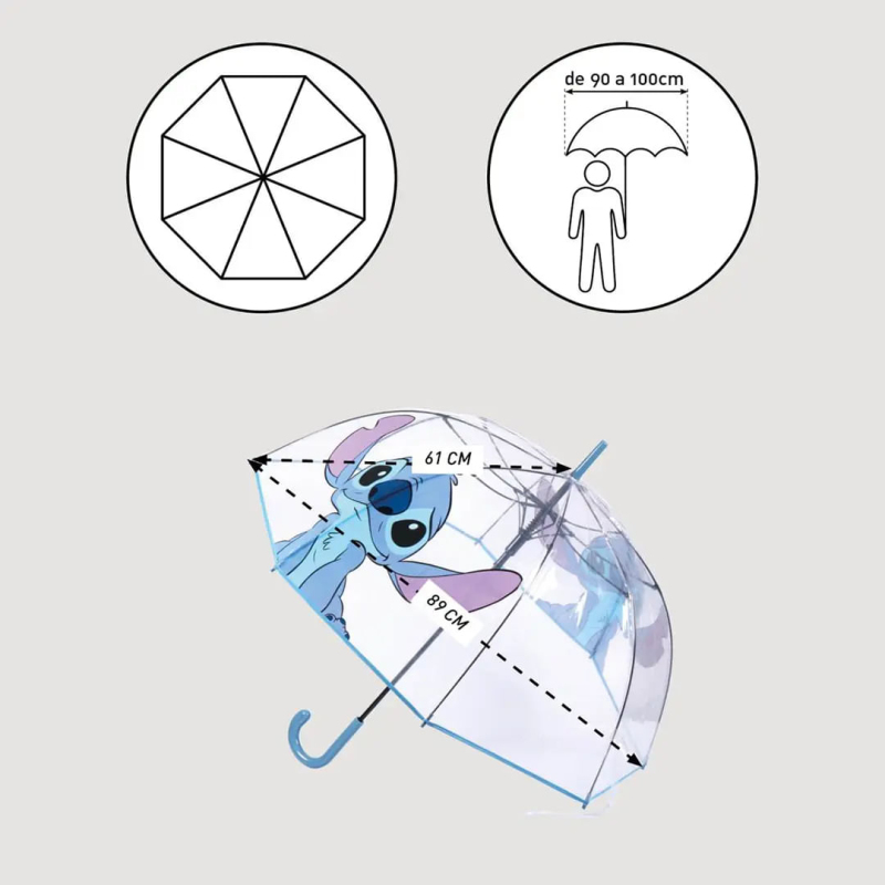 S tímhle kouzelným deštníkem s motivem Lilo & Stitch tě špatné počasí nerozhodí! Po otevření má průměru 86 cm, takže tě bezpečně ukryje před deštěm, a díky průhlednému materiálu budeš mít perfektní přehled o okolí. Na deštníku tě navíc hlídá roztomilý Stitch, který ti zpříjemní každý krok. Je lehký, skladný a pohodlný na nošení, což z něj dělá ideální doplněk nejen pro děti, ale i pro dospělé milovníky Disney.