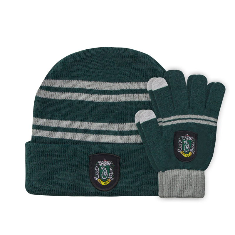 Čepice a rukavice dětské velikosti v barvách a se znaky koleje Zmijozel v Bradavicích, škole čar a kouzel z příběhů o Harry Potterovi. V této stylové sadě naleznete kromě čepice pár šikovných rukavic se speciálními koncovkami pro palec a ukazovák, které usnadňují práci s dotykovými obrazovkami (smartphony, tablety, apod.).