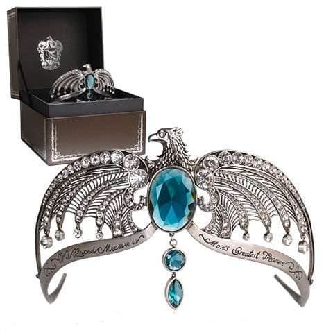 Věrná replika ztraceného diadému Roweny z Havraspáru, který lord Voldemort proměnil na jeden ze svých viteálů. Na spodním lemu šperku je vyražen nápis: Wit beyond measure is man s greatest treasure. Diadém je vyroben z kvalitní postříbřené mosazi a má univerzální velikost. Délka obroučky je cca 35cm a výška cca 5cm. Součástí je výstavní krabička s vytištěným znakem Havraspárské koleje. Ukázka diadému na YouTube od Franta Flinta - Collector and movie fan.