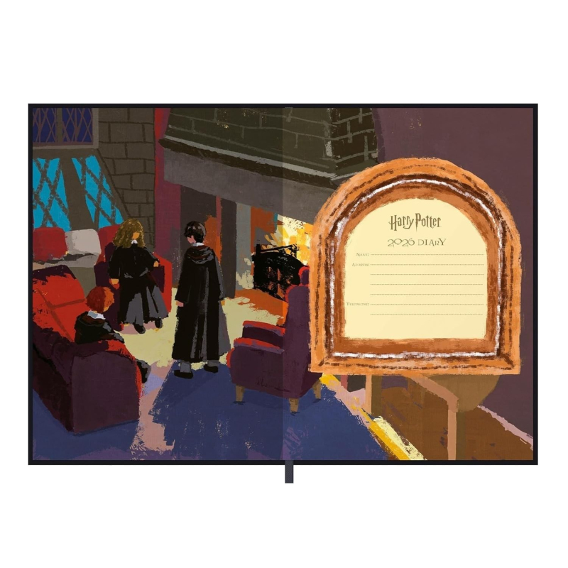 Diář s Harry Potterem pro rok 2026 v sobě spojuje praktičnost a magii kouzelného světa školáků z Bradavic! Nech se provázet po celý rok Harrym, Ronem, Hermionou a scénami z tvých oblíbených příběhů. Diář má linkované stránky, kam si můžeš zapisovat své schůzky s přáteli a čaroději, hodiny alchymie i další plány na neplechy. Diář v pevných deskách nabízí celkem 352 stran a je v angličtině, s informacemi o měnách, s anglickými metrickými jednotkami, svátky a jmény. Součástí diáře jsou také záložka a elastické poutko na uzavření.