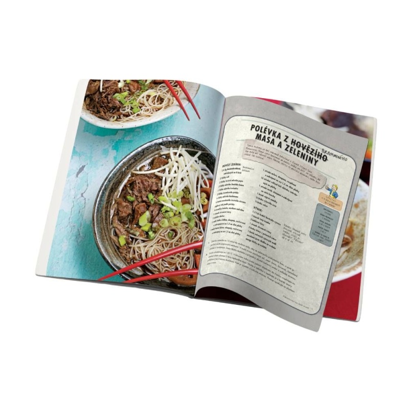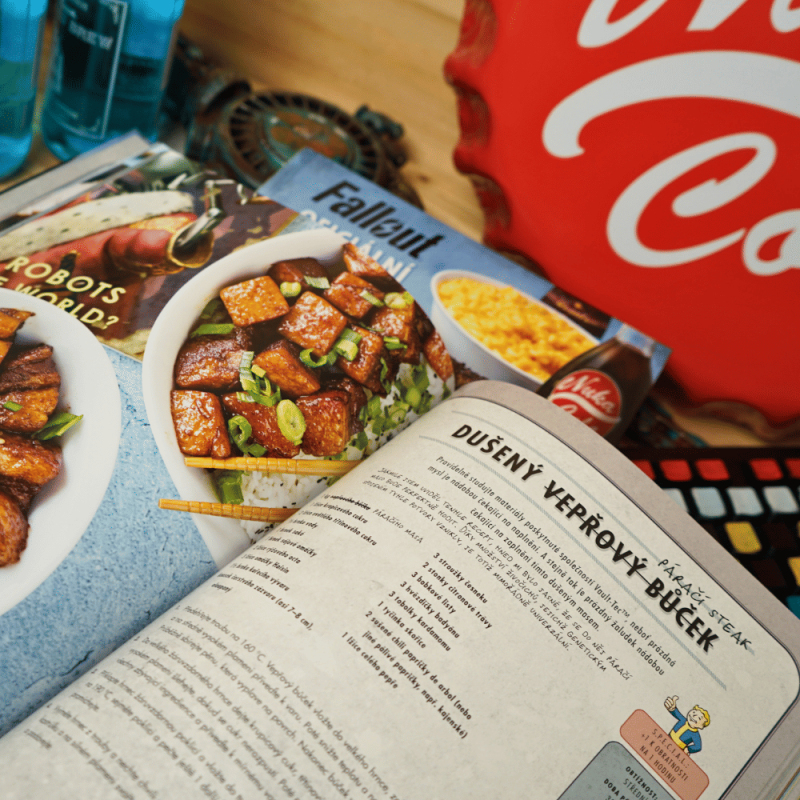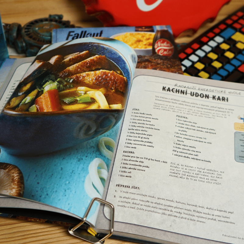 V pustině se nevaří... ale přežívá se ve velkém stylu Vítej v době po výbuchu, kdy není nouze o radiaci, mutanty a hlad. Fallout: Oficiální kuchařka obyvatele Vaultu je kuchařský manifest pro všechny, kdo přežili (nebo si to aspoň myslí). Na více než 180 stranách najdeš přes 70 receptů inspirovaných postapokalyptickým světem Falloutu, sepsaných s chutí, špetkou humoru a věrností hernímu univerzu od Bethesda Game Studios. Chybí suroviny? Improvizuj jako správný Vault-boy Tahle kuchařka je praktická, a přesto stylová. V každém receptu najdeš poznámky zkušeného přeživšího, který tě naučí, jak adaptovat pokrmy na jakékoli podmínky – ať už vaříš v dobře vybavené kuchyni, nebo v rezavém hrnci nad ohněm z pneumatik. Kompletní kulinářský průvodce Vault-Tecu™ Rozděleno do tematických kapitol – předkrmy, polévky, přílohy, hlavní chody, dezerty i koktejly. Všechny recepty jsou doplněny krásnými fotografiemi, přehledným postupem a věrně stylizované do tónu série Fallout. V každém detailu je znát láska k originálu – tahle kniha není jen merch, ale funkční kuchařka, kterou si užiješ i bez Pip-Boye. Dárek, který přežije každou apokalypsu Hledáš originální dárek pro hráče, geeky nebo milovníky netradiční kuchyně? Tohle je trefa přímo do centra Vaultu. Fallout kuchařka potěší sběratele, nadšence do vaření i všechny, co chtějí na chvíli uniknout do jiného světa – a přitom si pochutnat. Připrav se, přeživší. Na powerarmor můžeš zapomenout – s touhle kuchařkou je tvou zbraní lžíce! A odpověď na otázku „Co bude dnes k večeři?“ konečně získá správný styl!