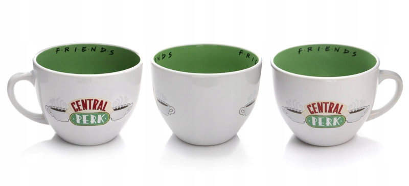 Dejte si kávu stylově, s hrnkem ozdobeným logem Central Perku, oblíbené kavárny hrdinů amerického seriálu Přátelé - Friends! Tento opravdu velký hrnek se vám bude hodit na mega cappuccino i na polévku.