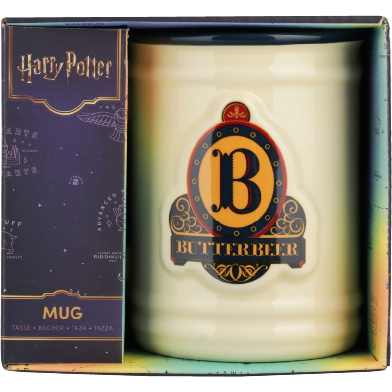 S tvarovaným keramickým hrnkem na Máslový ležák z Harryho Pottera si doma vytvoříš tu pravou útulnou atmosféru hostince U Tří košťat v Prasinkách. Parádní hrnek zdobí logo slavného piva s máslem a až ho naplníš lahodnou čokoládou, voňavou kávou, horkým čajem... nebo Máslovým ležákem, uvidíš, jak rozjasní tvé zimní večery! Hrnek není vhodný do mikrovlnky a myčky nádobí.