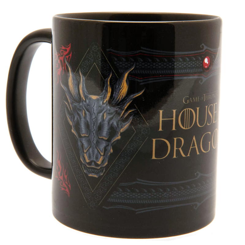 Pěkný černý hrnek s grafikou populárního fantasy seriálu House of the Dragon se hodí nejen ke sledování vaší oblíbené série.