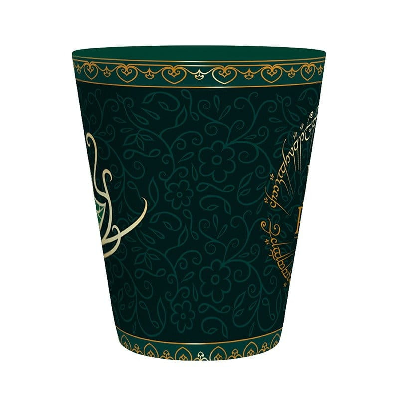 Krásný zelený hrnek zdobený zlatými elfskými motivy pro milovníky Středozemě a fantasy trilogie Pán prstenů! Vychutnejte si jemný zelený čaj či kávu v elfím stylu. Skvělý hrnek pro všechny ctitele Arwen či obdivovatelky Legolase! Hrnek není vhodný do mikrovlnky nebo myčky nádobí.