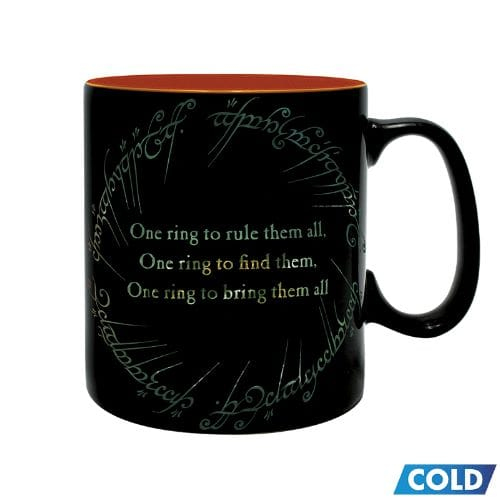 Jeden hrnek vládne všem... Jeden všechny spojí v jedinečný teplý nápoj. Vychutnej si čaj, kávu nebo kakao z mordorského hrnku, který mění grafiku spolu s teplotou nápoje uvnitř. Sleduj, jak se z temnot vynořuje Prsten moci a Temný pán Sauron. Originální keramický hrnek pro fanoušky Pána prstenů podle filmové fantasy trilogie! Hrnek není vhodný do mikrovlnky a myčky nádobí.