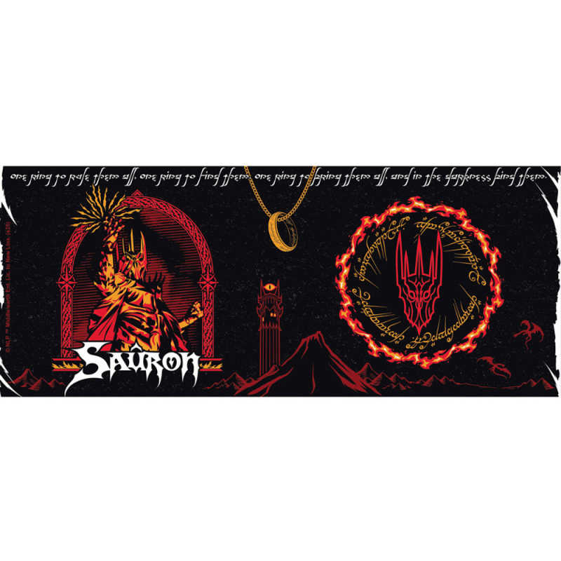 Hrnek Pán prstenů – Sauron je ideální volbou pro každého, kdo se nebojí nahlédnout do temné věže. Dominantní silueta Saurona a tmavý design dodají každému doušku nádech Středozemě pod stínem Mordoru. Vyroben z vysoce kvalitní keramiky s objemem 460 ml, vhodný do myčky i mikrovlnné trouby. Dodáván v dárkové krabičce s okénkem – skvělý dárek pro fanoušky Tolkienova světa.