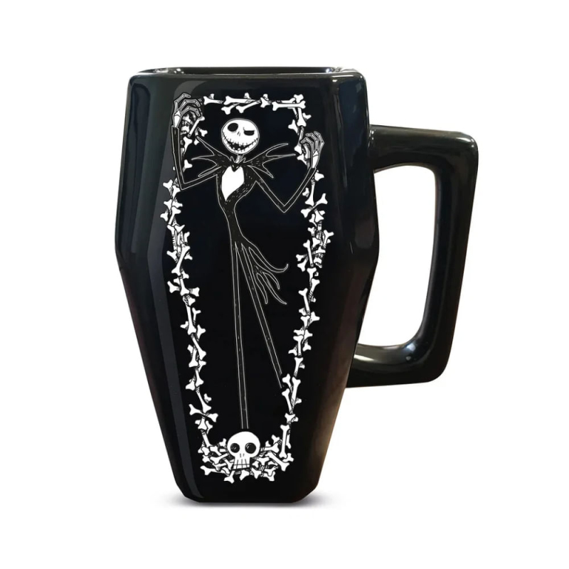 Dopřej si pár doušků něčeho silného či jemného z jedinečného hrnku v podobě rakve s Jackem Skellingtonem z oblíbeného animáku Ukradené Vánoce (The Nightmare Before Christmas) od Tima Burtona. Skvělý hrnek nejen na Halloween! Hrnek není vhodný do mikrovlnky a myčky nádobí.