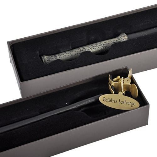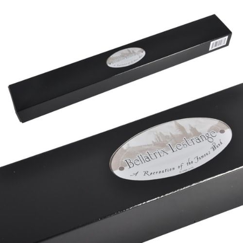 Replika kouzelnické hůlky smrtijedky Bellatrix Lestrangeové. Hůlka je dlouhá cca 33 cm, vyrobena ze syntetické pryskyřice. Součástí je stylová polstrovaná krabička s kovovou jmenovkou.