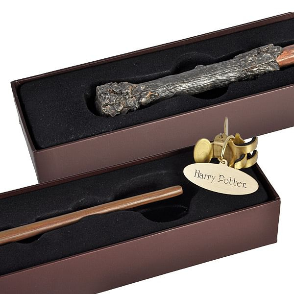 Replika kouzelnické hůlky Harryho Pottera, která byla původně vyrobena z cesmínového dřeva a ocasního pera ptáka fénixe. Hůlka je 14 palců dlouhá (cca 35 cm), vyrobena ze syntetické pryskyřice. Součástí je stylová krabička s kovovou jmenovkou.