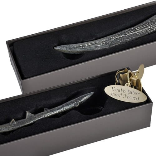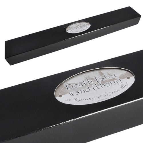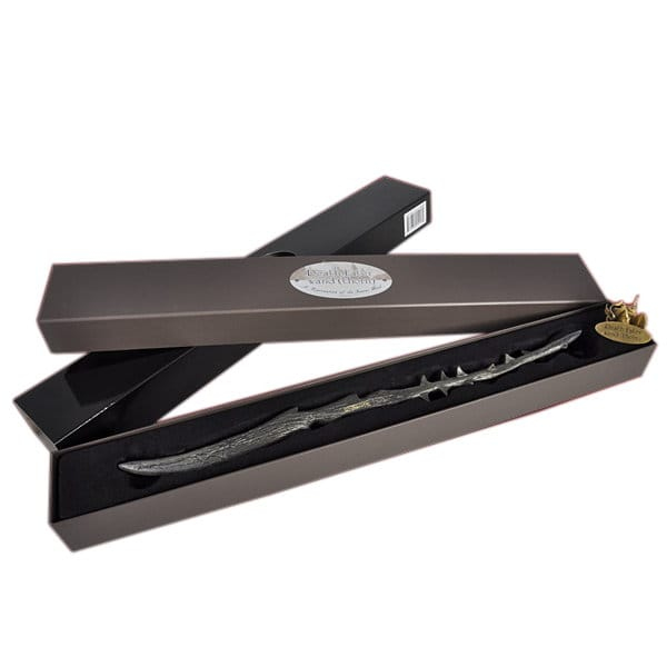 Replika stylové kouzelnické hůlky jednoho ze smrtijedů, dlouhá cca 35 cm, vyrobena ze syntetické pryskyřice. Součástí je stylová polstrovaná krabička a kovový štítek.