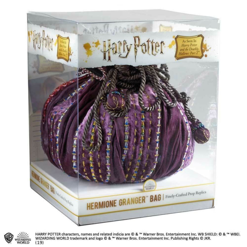 Pěkná replika kabelky Hermiony Grangeorvé z filmu Harry Potter a Relikvie smrti je ozdobena korálky a perličkami. Skvělý doplněk kostýmu či dárek pro fanynky příběhů plné kouzel a magie z Bradavic.