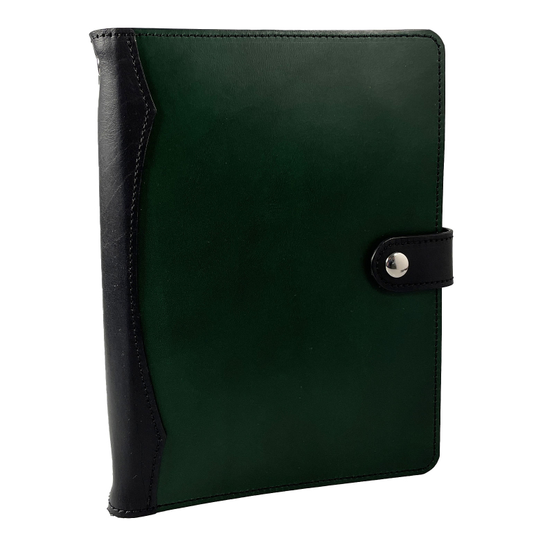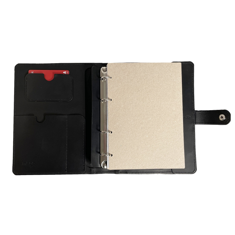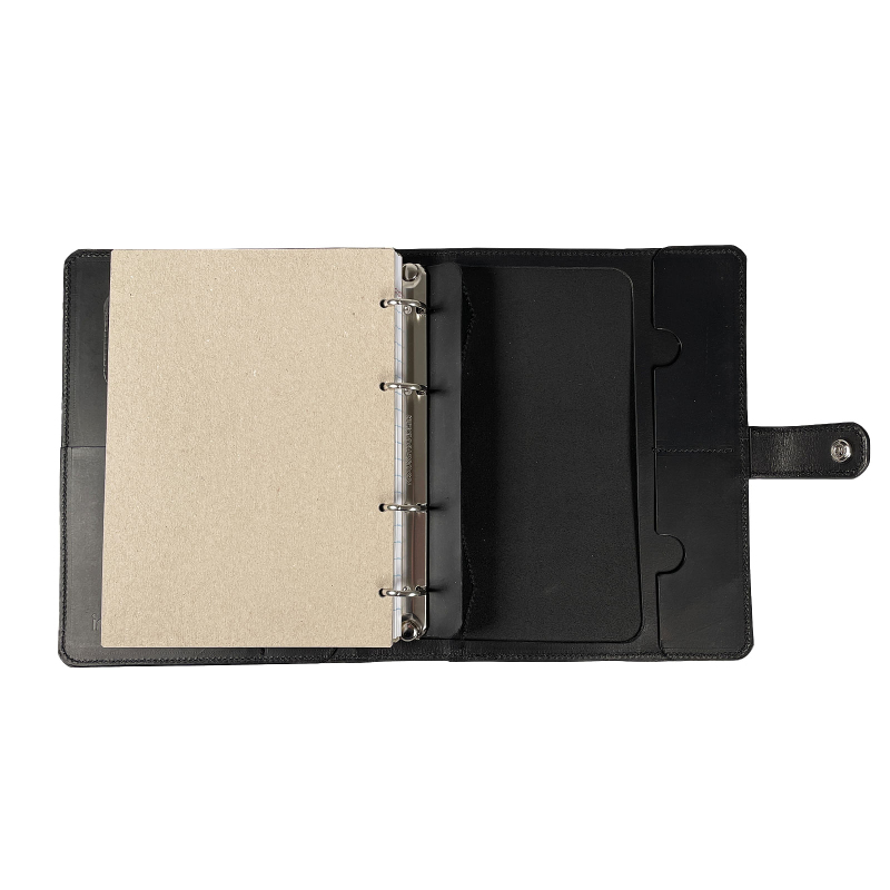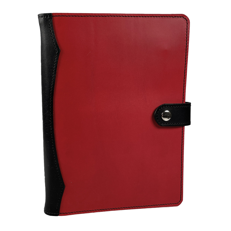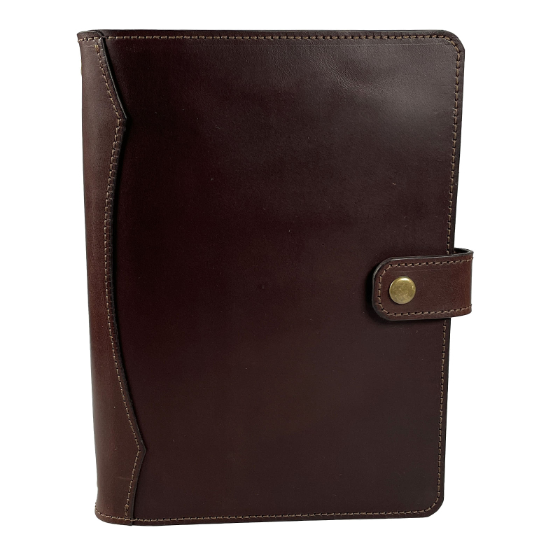 Stylově vypadající kroužkový linkovaný diář, blok vázaný z pravé hovězí kůže s prošíváním vyrobený v naší brašnářské dílně. Neocenitelný pomocník pro pracovní schůzky, zápisy ze školení nebo poznámky pro vaši příští knihu či cestu kolem světa. Vnitřek koženého obalu se pyšní několikero kapsami, do kterých můžete uschovat smartphone, pero nebo třeba vizitky. Vždy tak budete mít po ruce vše potřebné, a navíc v jedinečném obalu. Kožený obal má zapínání na cvoček, a tak se nemusíte bát, že byste z něj něco vytrousili. Díky kvalitnímu zpracování, prvotřídnímu materiálu a pevnému prošití je to dárek, který vám bude sloužit dlouhé roky. Samozřejmostí karis bloku je snadná výměna papírů. Líbí se vám luxusní kožený obal na karis blok a chtěli byste ho do firmy s vlastním logem? Ozvěte se nám na e-mail info@imago.cz a my pro vás navrhneme řešení. Stejně tak, pokud byste chtěli obdarovat svou kamarádku, kamaráda, babičku, sestřenici, kolegyni v práci a chtěli byste speciálně ozdobit diář. Prohlédněte si další možnosti ručního zdobení nebo ozdobného gravírování kůže, díky kterým se z bloku stane jedinečný dárek. Po rozevření je šířka 37,5 cm.
