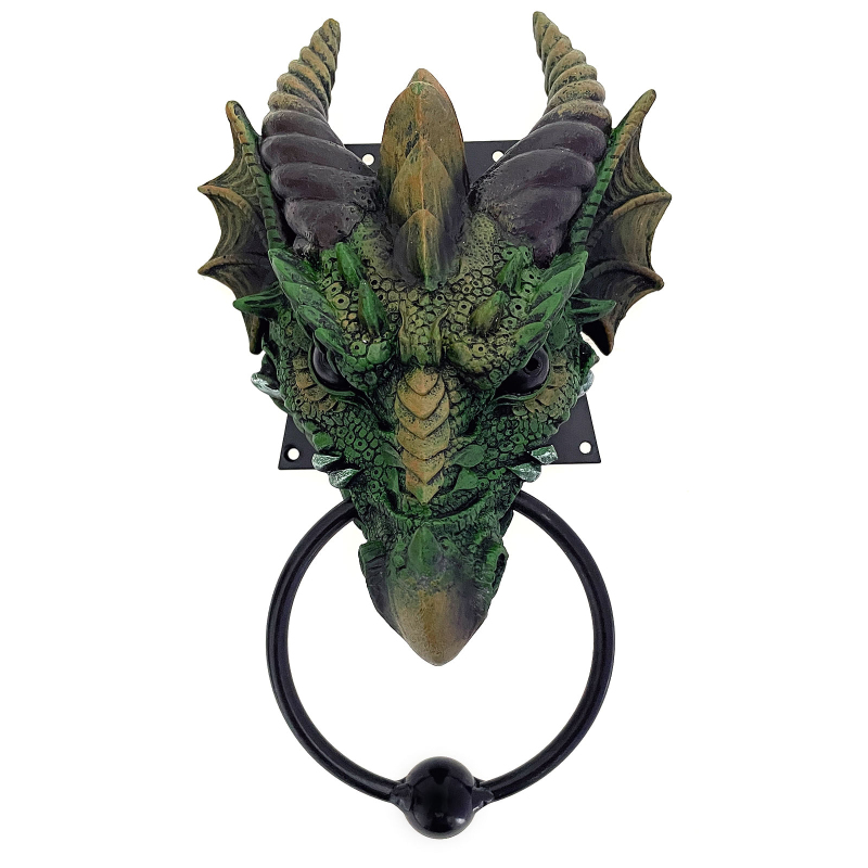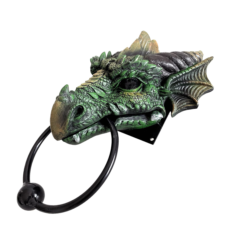 Hezké klepadlo na dveře v podobě zeleného draka se hodí pro obydlí druidů i domácnost správného drakobijce.