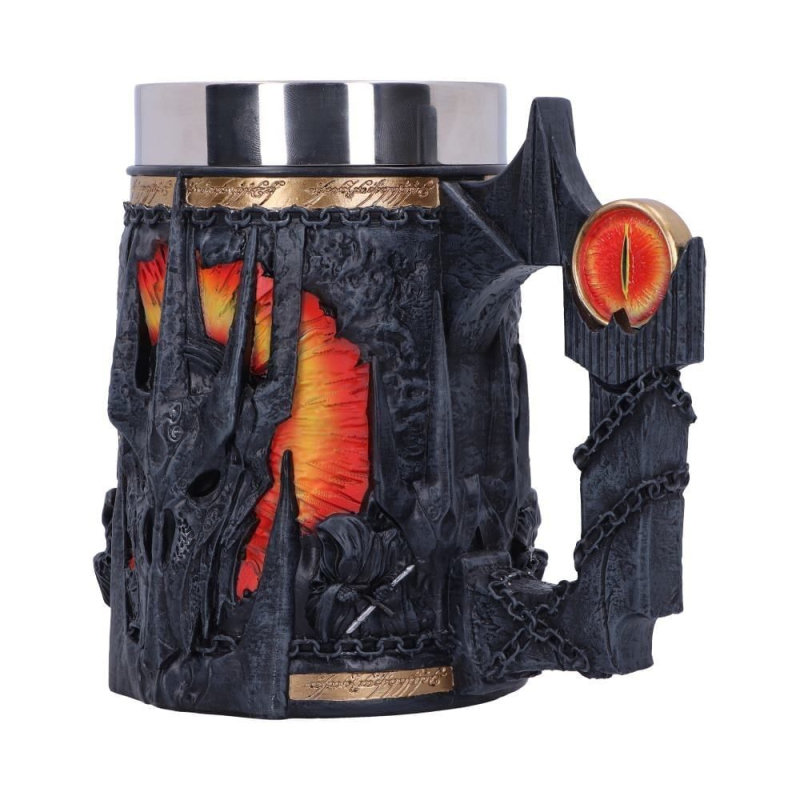 Sauronův korbel se spoustou pěkných detailů bude jedinečným dárkem pro fanoušky fantasy ságy Pán prstenů! Korbel zdobí maska Temného pána z Mordoru, doprovázená dvojicí Nazgûlů - Prstenových přízraků. Horní část lemuje zlatý proužek s nápisem z Prstenu: Jeden prsten vládne všem... Korbel má uvnitř vyjímatelný nerezový insert, což umožňuje jeho snadnou údržbu. Korbel není vhodný do mikrovlnné trouby ani do myčky nádobí.