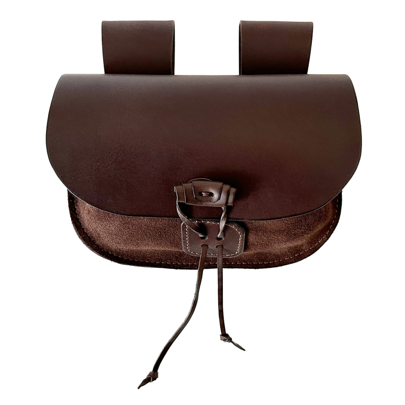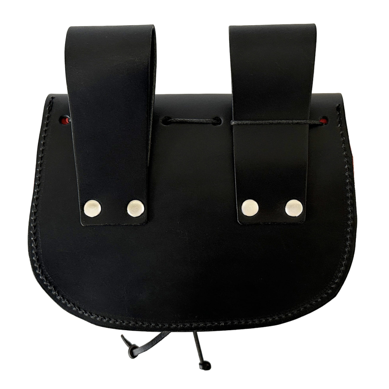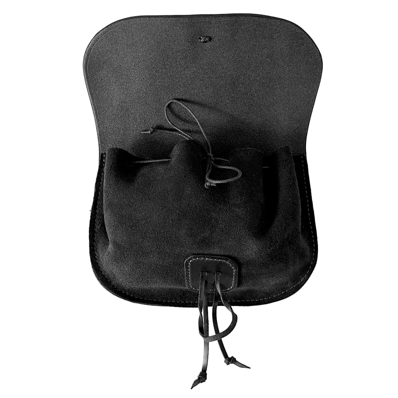 Doplň svůj historický kostým o stylový a praktický kousek! Tahle kožená taštice vychází z dobových předloh a skvěle se hodí na reenactment, LARP, historické festivaly i tematické akce. Nosí se zavěšená na opasku pomocí dvou pevných kožených poutek, takže ti bude při pohybu dobře držet a nebude překážet. Uložíš do ní mince, kostky, klíče nebo další drobnosti, které chceš mít vždy po ruce! Vyrobená je z kombinace hrubé kůže a štípenky, což jí dodává autentický vzhled i dlouhou životnost. Zapínání přední sklopy a následně zavazování typu měšec přináší výhodu dvojité ochrany. Šikovné prsty zlodějů tě pak můžou zajímat o něco méně. Vyber si svou variantu – Černá je univerzální a výrazná. Hnědá je prostě klasika inspirovaná přírodními tóny. Černo-červená je výrazná kombinace, která z tebe udělá nepřehlédnutelnou postavu na každé bitvě i hostině! Rozměry taštice jsou 19 x 12 cm.