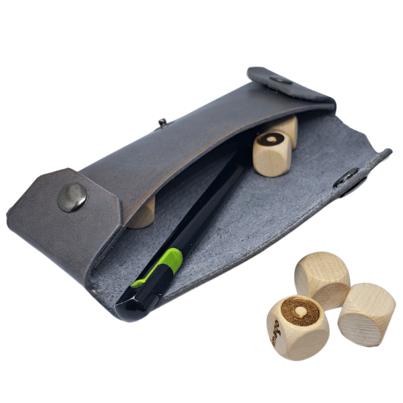 Tohle kožené pouzdro na kostky je výhra na všech frontách! Praktický pomocník pro tvá dobrodružství ve světě Zaklínač: Hra na hrdiny.Stylové šedé pouzdro je ozdobeno zaklínačskými runami. Je zpevněné cvočky a pro snažší skladování se dá jednoduše rozložit zcela naplocho. Je dost prostorné, aby se do něj vešly nejen kostky, ale také psací potřeby jako jsou tužka, propiska a guma. Prostě praktická a pragmatická sada hodná zaklínače.Sháníš stylovou zaklínačskou sadu? V naší nabídce najdeš také Kožený váček s vlkem, Kožený váček s runami nebo barevně sladěný praktický Kožený dice tray.
