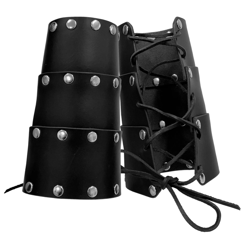 Pořádný nátepník je základní výbavou každého správného bojovníka! Kožený nátepník nýtovaný vyrábíme z hověziny hrubé cca 2,5 mm. Nátepník je snýtován ze 3 pruhů kůže širokých 7 cm. V nejužším místě - určeném k ochraně zápěstí - je nátepník široký 20 cm, v nejširším místě - nejblíže lokti - pak 27 cm. Díky šněrovací kožené tkanici má však univerzální velikost. Délka nátepníku 17 cm, min. obvod zápěstí 17,5 cm Nátepník vyrábí naši sedláři ve dvou barvách: černé a hnědé. Proces barvení probíhá kompletním mořením. Černá varianta je snýtovaná stříbrnými nýtky, hnědá mosaznými. V obou případech jich na nátepníku najdete 28 ks. Uvedená cena je za jeden nátepník.