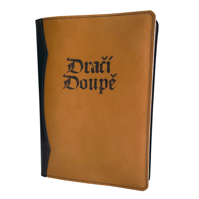 Originální kožený obal na knihu Dračí doupě II s logem této legendární RPG hry od Altaru vznikl na přání v našem brašnářství. Pro všechny nadšené hráče a fanoušky jsme ho vyrobili ze 100% hovězí kůže. Zabalte svou knihu do jedinečného koženého obalu. Nejen, že ji ochráníte před všemi vnějšími vlivy, které na ni mohou číhat v batohu, tašce či na stole, ale zároveň si pořídíte jedinečný doplněk, který vám budou ostatní hráči tiše závidět. Obal se také skvěle hodí jako dárek. Logo je vytvořeno gravírováním na kůži, následně byl kožený obal ošetřen lakem, který ho chrání proti opotřebení. Obal jsme vytvořili na míru pravidlům Dračího doupěte II v pevné vazbě. Samozřejmě se do něj vejde i brožovaná varianta pravidel, ale obal nebude sedět dokonale.