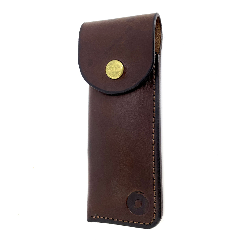 Elegantní kožené pouzdro na nůž, které jsme pro vás vyrobili v naší dílně. Můžete ho nosit na opasku a svůj nůž tak budete mít vždy po ruce. Obal jsme vyráběli na míru Opinelu No.08, ale snadno do něj schováte jakýkoliv zavírací nůž podobných rozměrů. Na výrobu pouzdra jsme použili prvotřídní hovězí kůži a zapíná se pomocí kovového cvočku. Díky koženému poutku ho můžete nosit na opasku, nebo připnout na batoh.