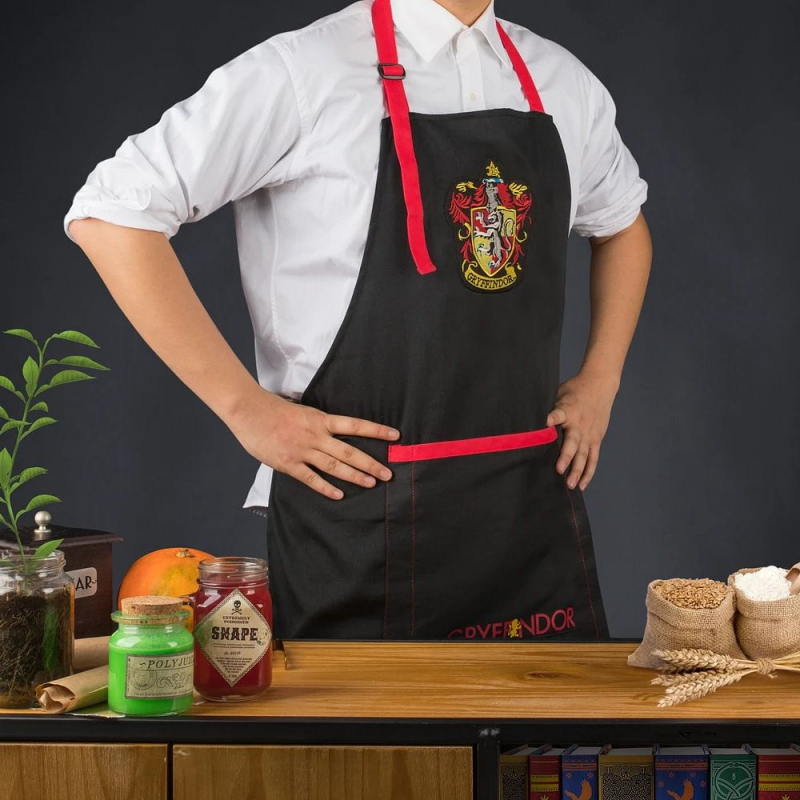 Skvělá kuchyňská zástěra se znakem koleje Nebelvír z Bradavic je tu pro všechny, kteří milují kuchařskou magii a příběhy Harryho Pottera! Zástěra má velkou kapsu, takže kromě vařečky nebo kvedlačky v ní snadno schováte třeba i kouzelnickou hůlku.