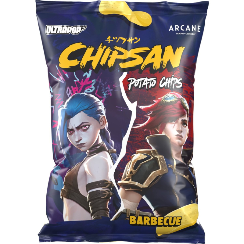 Bramborové chipsy League of Legends: Arcane - Vi vs Jinx s BBQ příchutí jsou tou správnou pochoutkou pro hráče League of Legends a fanoušky animovaného seriálu Arcane! Otevři sáček a pusť se do souboje mezi hrdinkami Vi a Jinx, ať to pěkně křupe! Složení: brambory 56 % (EU), slunečnicový olej, olivový olej, BBQ příchuť 11 % (cukr, sůl, regulátor kyselosti: octan sodný, kyselina citronová; kvasničný extrakt, rajčatový prášek, kouřové aroma, glukózový sirup, fruktóza, maltodextrin, aroma, koření: kmín, černý pepř; barviva: extrakt z papriky). Alergeny včetně obilovin obsahujících lepek jsou vyznačeny tučně. Může obsahovat stopy PŠENICE. Skladujte na chladném a suchém místě, mimo dosah světla. Po otevření sáček znovu uzavřete a spotřebujte do tří dnů.