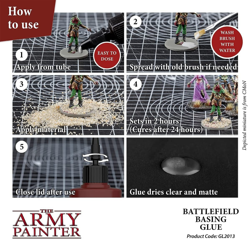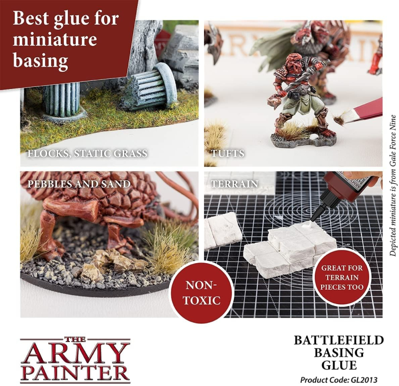 Lepidlo Army Painter Basing Glue je vhodné pro tvorbu podstavců, scenérií a bojišť. Lepidlo není toxické.