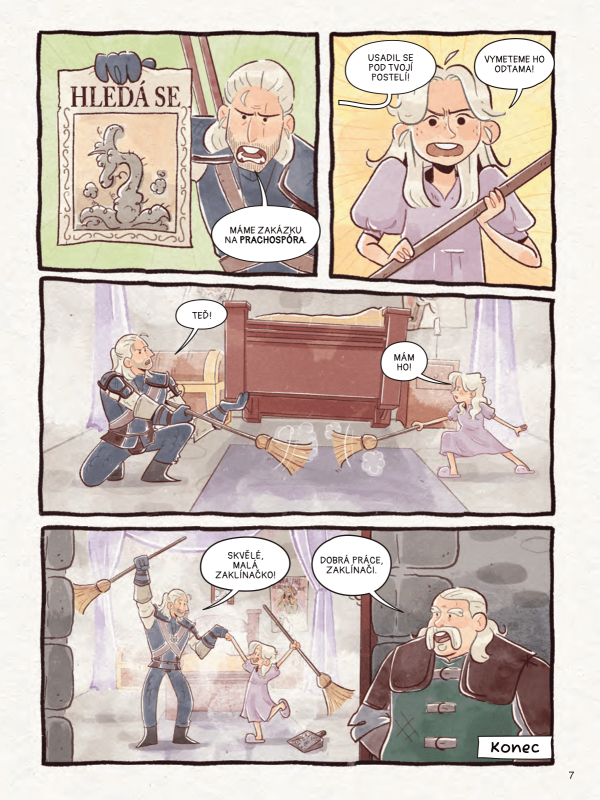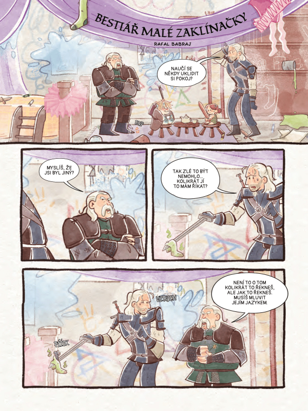 Vstup do světa zaklínače vhodný pro táty, mámy, potrhlé strejdy i ty nejmenší lovce nestvůr! Krásný rodinný komiks Malá zaklínačka je ideální pro rodiče i jejich ratolesti, kteří v něm najdou velkou dávku reality se špetkou světa Andrzeje Sapkowského. Táta na plný úvazek Malá zaklínačka (The Little Witcher) je rodinně laděný komiksový sborník vycházející z herního universa Zaklínače. Jedná se o soubor krátkých příběhů, kde Geralt vystupuje jako “táta, který bojuje s příšerami” a pečuje o mladou Ciri s veškerou něžností i humorem. Beze strachu z temnoty Komiks je jasně cílený na rodiny a fanoušky Zaklínače, kteří chtějí své děti postupně seznámit s Kontinentem bez explicitních scén. Rodiče a příbuzní mohou beze strachu sdílet své nadšení s mladšími čtenáři – bez násilí a jemným humorem, který pobaví rodiče a rozesměje nejmenší zaklínače. Od zkušených tvůrců Komiks má 80 barevných stran a grafiku vytvořila italská ilustrátorka Giada Carboni; příběhy napsalo hned několik autorů. Pokud hledáš geekovský dárek, který potěší celou rodinu, Malá zaklínačka tě rozhodně nezklame. Recenze Malé zaklínačky Recenze na deti-noci.cz (Jan Procházka) Recenze na medium.cz (Ondřej Zeman) Recenze na gamingprofessors.cz (Patrik Klicman)