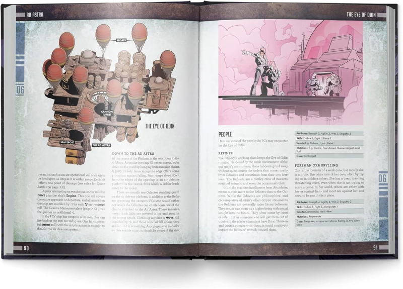 Příručka Ad Astra ti přináší rozšíření pro post-apokalyptickou hru na hrdiny Mutant: Year Zero. Pravidla pro cestování vesmírem. Příručka je v angličtině. Through the tiny portholes of the space capsule, you see the city hanging weightlessly beneath the stars – massive, sprawling, gleaming. A myriad of metal shapes connected by tubes and wires, like a huge hanging mobile over Earth, the poisoned cradle of humanity. The thrusters of your capsule push you onward through the maze of wires and ladders. Drawing closer, it becomes clear that there is something wrong with this star city. You float past large holes, torn wires, and cracked satellite dishes. It seems the Apocalypse reached all the way to the heavens. Ad Astra is a thrilling campaign module for Mutant: Year Zero that takes the player characters from the devastated surface of Earth into orbit, out into the solar system, and perhaps further still. Ad Astra can be played stand-alone or as a direct continuation of the Path to Eden campaign in the Mutant: Year Zero core rulebook. The book also includes rules for playing Mutant: Year Zero in space and an overview of the solar system with ideas for further adventures. NOTE: This is not a complete game. You need the Mutant: Year Zero core game to use this book. The Mutant: Mechatron core book is also useful, but not required.