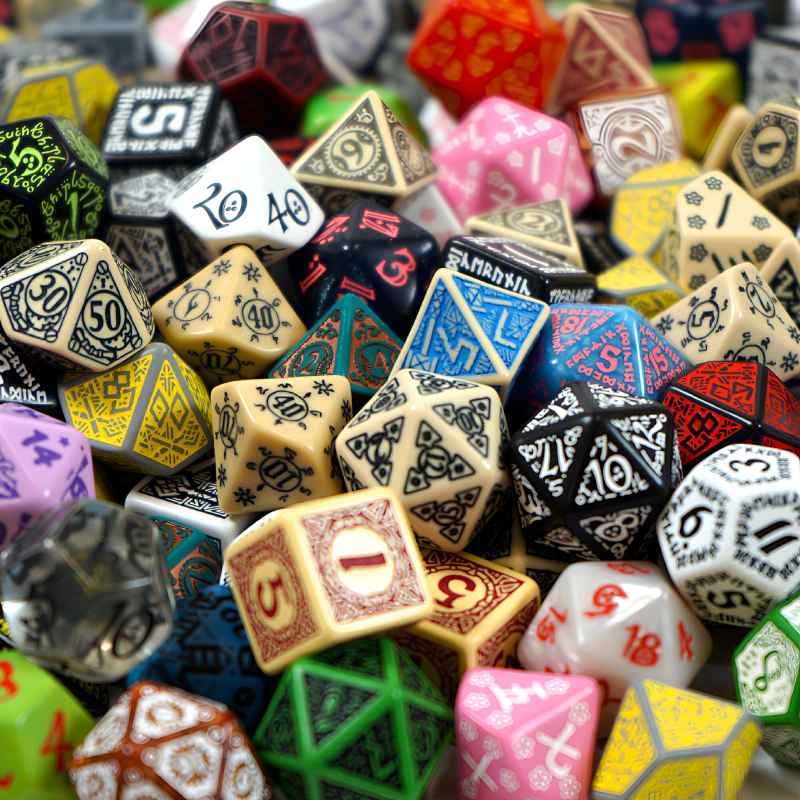 Zvol si kostkové překvapení! V tajemném balení najdeš 1 náhodnou zdobenou kostku - a to šestistěnku nebo mnohostěnku různé barvy. Kostka může být dračí, elfí, keltská, a dokonce i steampunková! Nechť paní štěstěna zvolí, která kostka ti padne! Cena za 1 ks.