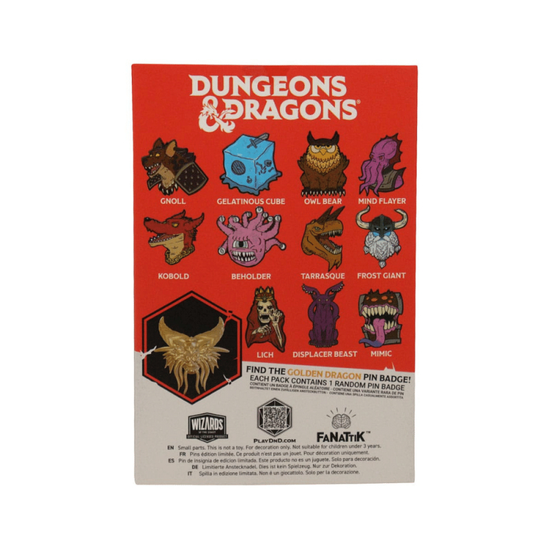 S tebou už od roku 1974! Oslav úžasné 50. výročí stolní RPG hry Dungeons & Dragons. Přidej se k nám, staň se hrdinou a zažij mysteriózní pocit z výběru krabičky, která obsahuje 1 z 12 tajemných odznaků. Každý odznak je kovový, smaltovaný a silně reliéfní. Mezi odznaky můžeš najít takové oblíbené mostra jako Mimic, Gelatinous Cube, Owlbear , Beholder a další!V každé krabičce máš možnosť také objevit vzácny zlatý odznak!