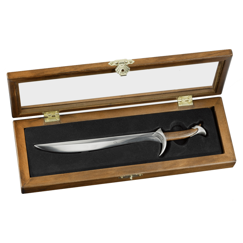 Zmenšená replika Thorinova meče (Orkrist) z filmového zpracování Tolkienova Hobita. Nůž je dlouhý 20,5 cm, součástí je dřevěná krabička o rozměrech 25 x 9 x 3 cm, velice věrná replika, která potěší všechny fanoušky Hobita.