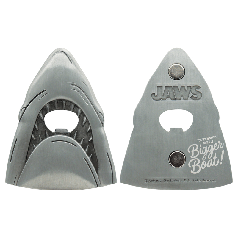 Co umí žraločí čelisti kromě trhání masa? No přece otevírat lahve! Tento oficiálně licencovaný otvírák na láhve Čelisti k 50. výročí kultovního filmu vypadá přesně tak, jak bys čekal – jako pořádně děsivá tlamka. Díky magnetu na zadní straně si ho můžeš připnout na lednici, takže tě nesežere, ale naopak ochotně pomůže otevřít pivo nebo limču. Rozměry: 87 × 70 mm. Když už musíš otevřít lahev, ať to má styl.